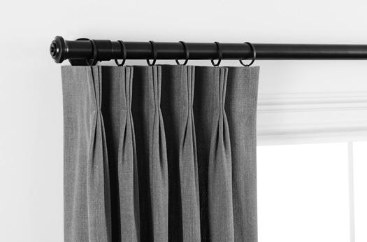 Quick Ship Drapery Panels are available in three classic styles: 3-Finger Pinch Pleat, 3-Finger Euro Pleat and Grommet.