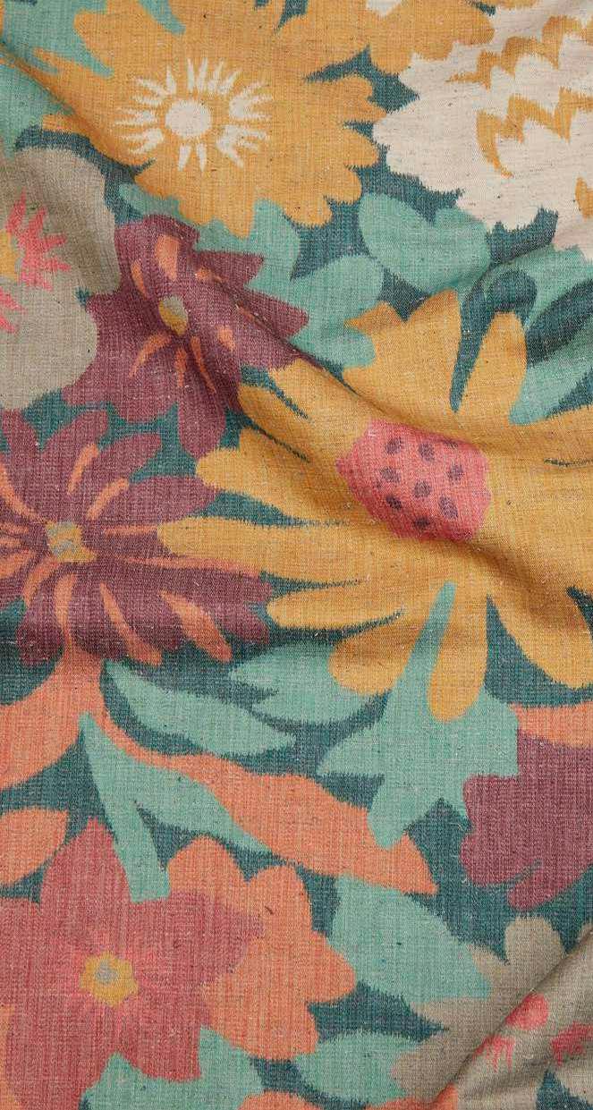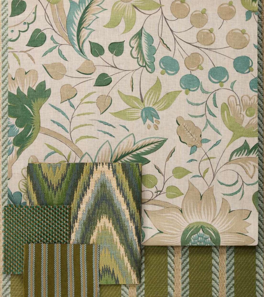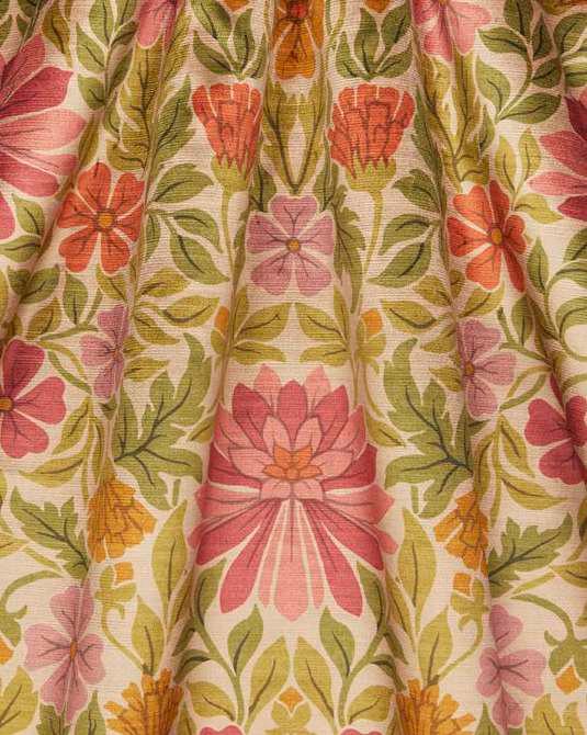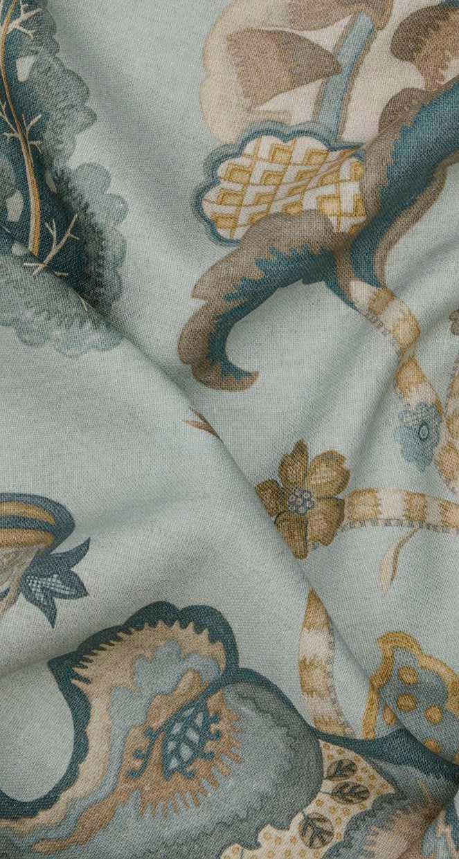 Drawing inspiration from a collection of Jacobean-style, handpainted artworks discovered in the Liberty archive, this striking ornamental design showcases the grandeur of early 17th century textiles. Oversized flowers enveloped by lush foliage are depicted in refreshing hues and arranged in a trailing Tree of Life-style pattern, highlighting the richness of flow and form. Expertly printed in Italy onto a 100% linen base with a heavy drape and soft tumbled finish, Etched Bloom is suitable for upholstery, drapery, cushions, and accessories.