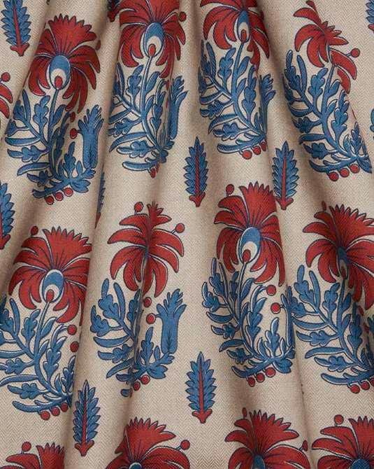 Discovered as a loose fabric fragment in an 1880s Liberty pattern book, Palm Parade offers a glimpse into the early days of Liberty prints. Where the archival artwork was originally crafted using woodblock printing, this contemporary linen interpretation is inspired by the practice’s attention to detail. Showcasing neatly arranged rows of stylised carnations evocative of Middle Eastern artistry, Palm Parade is a timeless piece of the design house’s storied legacy. Ideal for upholstery, drapery, cushions, and accessories.