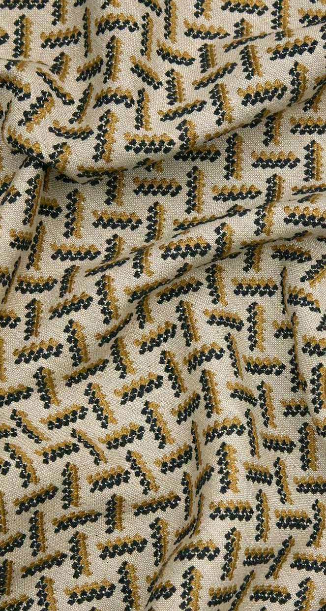 Echoing the grandeur of the Tudor-style architecture discovered within the Liberty flagship store, the building’s landmark chimneys are evoked in Tudor Brick’s geometric pattern. Crafted from handmade bricks inspired by those found at Hampton Court, each of the Regent Street store’s chimney bricks are shaped from special moulds to create unique patterns. Carefully woven with a cotton-linen blend, Tudor Brick is appropriate for upholstery, drapery, cushions, and accessories.
