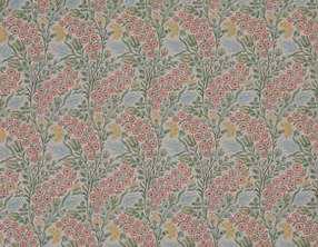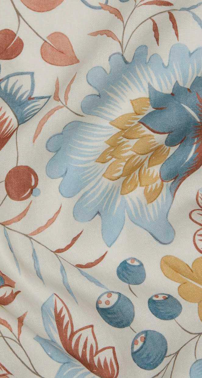Referencing traits of the Arts and Crafts movement, Berry Vine derives from a Liberty pattern book dating from c.1910. Printed on a luxurious soft-tumbled linen, this design is adorned with stylised lilies, bell flowers, and daisies. The slender, winding vines appear to stretch upwards creating a sense of delicate movement. Organic motifs and intricate shapes intertwine harmoniously, embodying the period’s celebration of craftsmanship and the beauty of the natural world. Berry Vine is ideal for upholstery, drapery, cushions, and accessories.