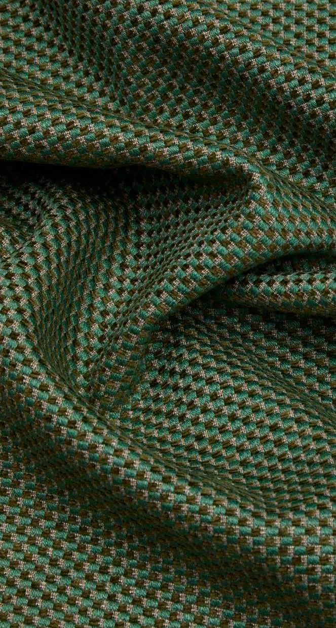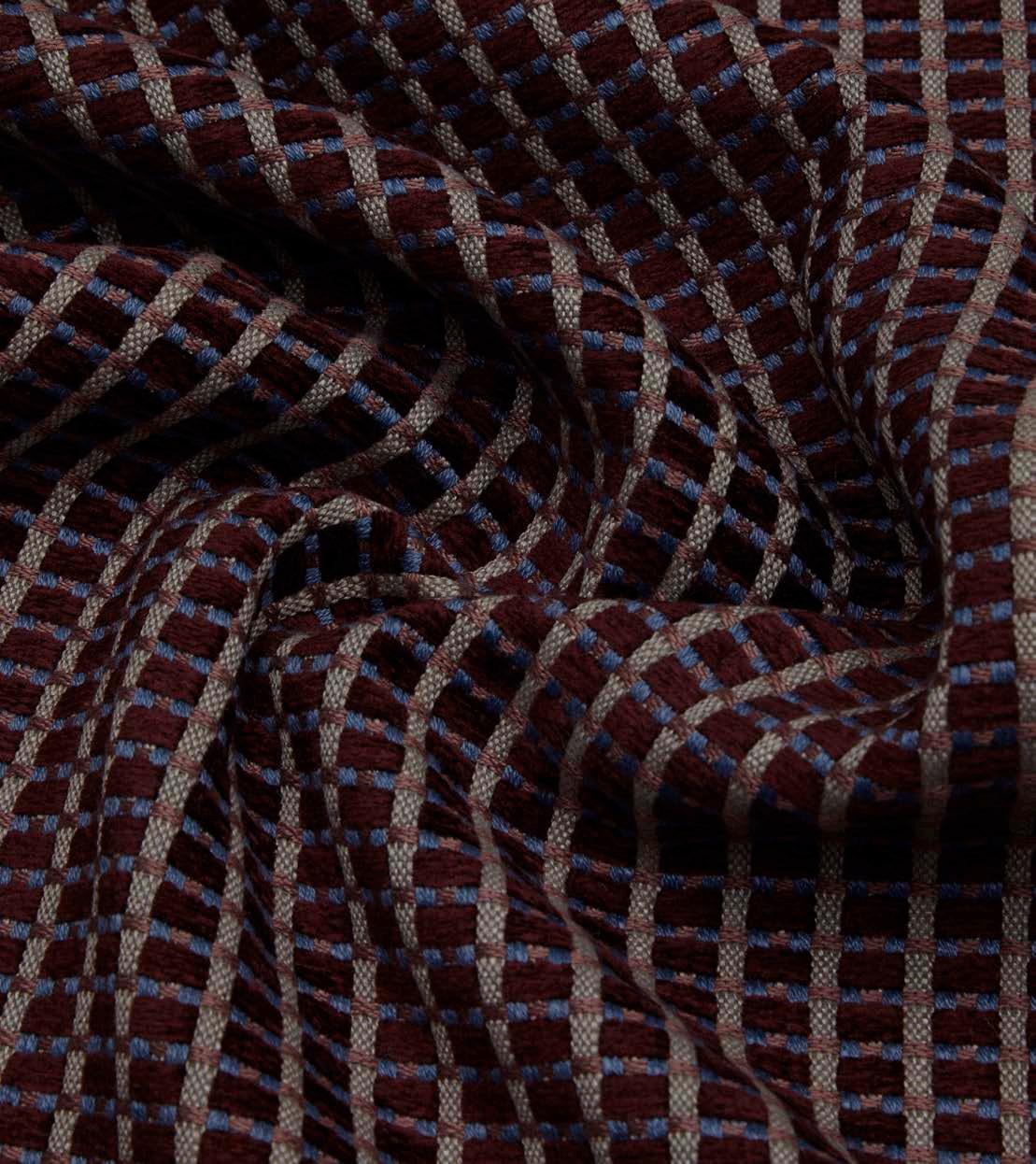 In a sophisticated exploration of geometric precision and tactile elegance, Cravat is a woven interpretation of a collection of printed silks discovered in the Liberty archive. The preserved intricate, tiny square patterns depicted in the original silk are reimagined in a larger scale, enhanced with the wool’s depth of richness. Suitable for light upholstery, drapery, cushions, and accessories.