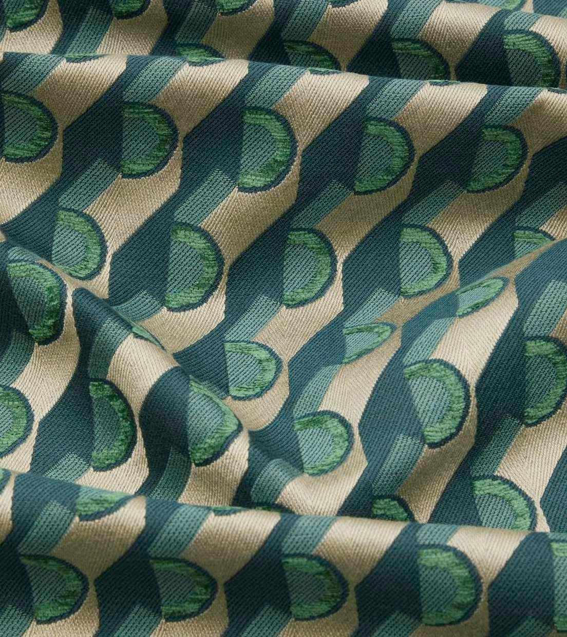 Inspired by a hand-painted Liberty artwork created in 1973, Orbella has been reimagined into a dynamic geometric pattern featuring a striking interplay of alternating stripes and circles. Reminiscent of a modernist collage, this contemporary coordinate utilises contrasting and complementary colours to create a vibrant visual rhythm. The perfect addition to the floral and paisley artworks in the collection, Orbella is beautifully woven by in Italy making it ideal for upholstery, drapery, cushions, and accessories.