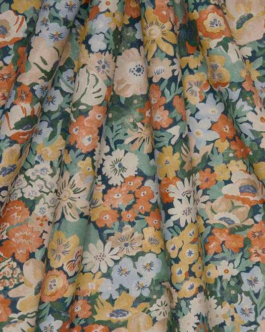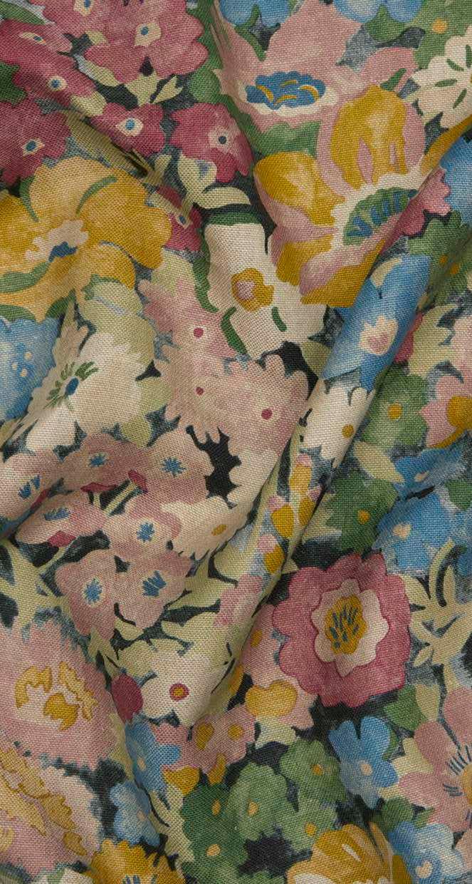 Reminiscent of 1930s Liberty floral prints, the Tana Lawn™ cotton classic, Thorpe, was skilfully created as a colourful, repeating design by the Liberty design studio in 1968. Now reimagined for contemporary interiors, Painted Thorpe has been repainted using watercolours for a nostalgic, rambling meadow look. A signature for Liberty interior florals, this design offers an interplay of pattern and form suited to modern spaces. Printed on a beautiful linen base in an exciting selection of multi-colourways, Painted Thorpe is suitable for upholstery, drapery, cushions, and accessories.