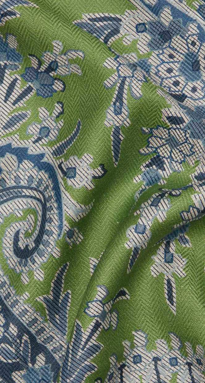 Discovered in one of Liberty’s archival pattern books, Palm Willow was carefully redrawn and reimagined to preserve the exquisite intricacy of the original design. This traditional paisley floral, infused with a tropical twist, features an abundant garden of trailing vines, feathery fronds, and jewel-like blossoms, all nestled among elegant boteh paisleys. Printed in Italy onto a beautiful linen base, Palm Willow is appropriate for upholstery, drapery, cushions, and accessories.