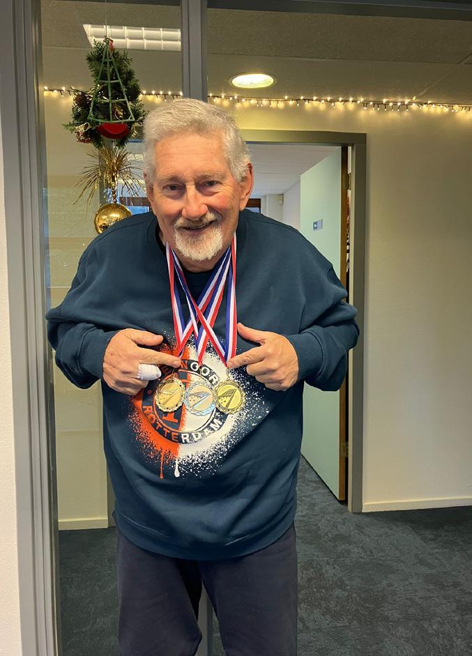 Peter Kuipers met zijn gewonnen sjoel medailles tijdens de spelletjesmiddag