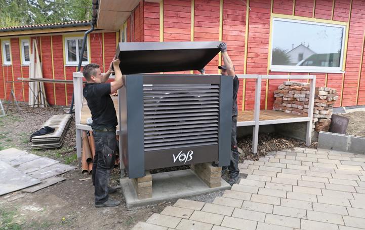 12 Mit dem Aufsetzen des stabilen, vor Witterung und Laubbefall schützenden Gehäusedeckels auf das Verdampfer-Element ist die Installation der Wärmepumpe abgeschlossen. Gut für die Nachbarschaftspflege und sich selbst: Aufgrund seines drehzahlgeregelten, sehr großen und langsam laufenden EC-Ventilators zählt der Verdampfer zu den leisesten Geräten am Markt.