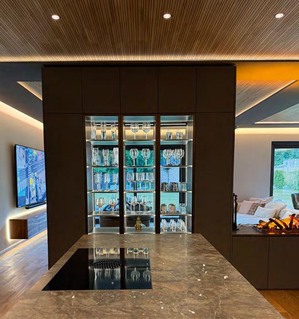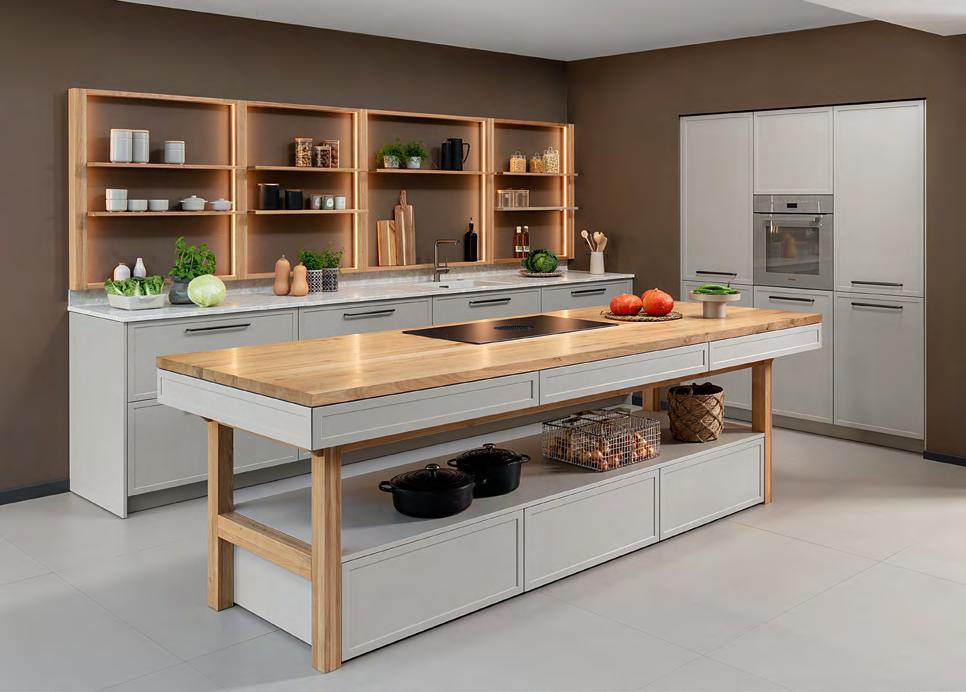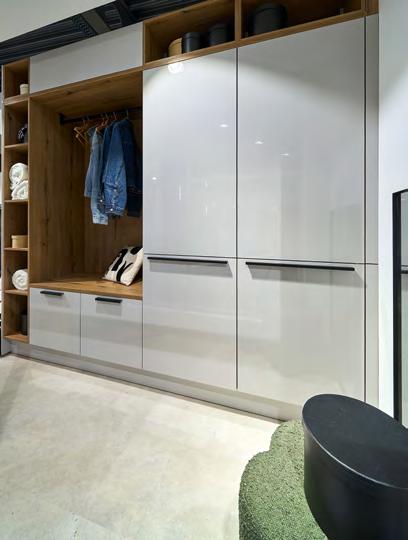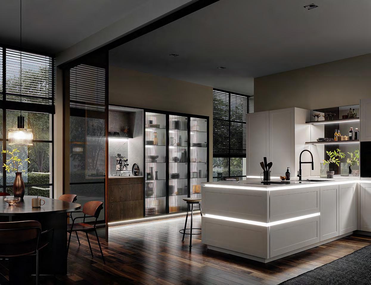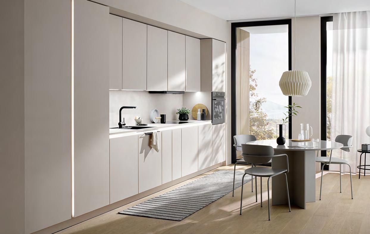 Licht wird im Katalog 2026 als integraler Bestandteil der Raumplanung verstanden. Das weiterentwickelte LUMICA® MEC LEDSystem ermöglicht vernetzte Beleuchtungslösungen bis hin zur Integration in SmartHomeAnwendungen auf Basis von ZigBee 3.0. Ergänzt wird das Sortiment durch das „Lucento“ Reling und LEDLichtsystem aus Aluminium mit schwarzer Oberflächenveredelung. Es kombiniert offene Aufbewahrung, Beleuchtung und Gestaltung in einem modularen Ansatz – insbesondere für Nischen und offene Küchenarchitekturen.