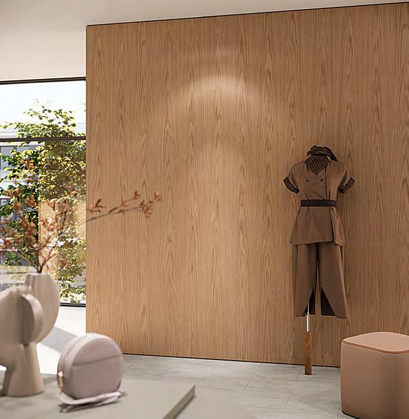 Briloner Designteams um Klaus Monhoff und Matthias Wombacher, übertragen auf die Anforderungen des italienischen Marktes. Textile Dekore, neue Eichenentwicklungen und differenzierte Unifarben prägen das Erscheinungsbild. Ergänzt wird dies durch die erstmals präsentierte S Kollektion – 75 in Caorso gefertigte DekorStrukturKombinationen, vollständig in die Industriekollektion eingebunden. Caorso steht damit exemplarisch für Eggers Anspruch, lokale Marktanforderungen mit globalen Standards und Designkompetenz zu verbinden.