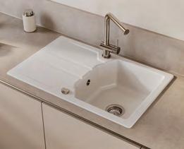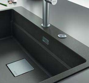 spülEn: matErial, form und EinBindunG Ein zentrales Kapitel des Katalogs bildet das weiter ausgebaute Spülensortiment. Mit der neuen Einbauspüle SILQUA, entwickelt in Zusammenarbeit mit Hans Winkler Design, Grafenau, zeigt Naber, wie sich Spülen als präzise gestaltete Bausteine in architektonische Konzepte integrieren lassen. Weich gerundete Innenradien treffen auf streng geometrische Außenkonturen. Die Spüle ist in Keramik und
