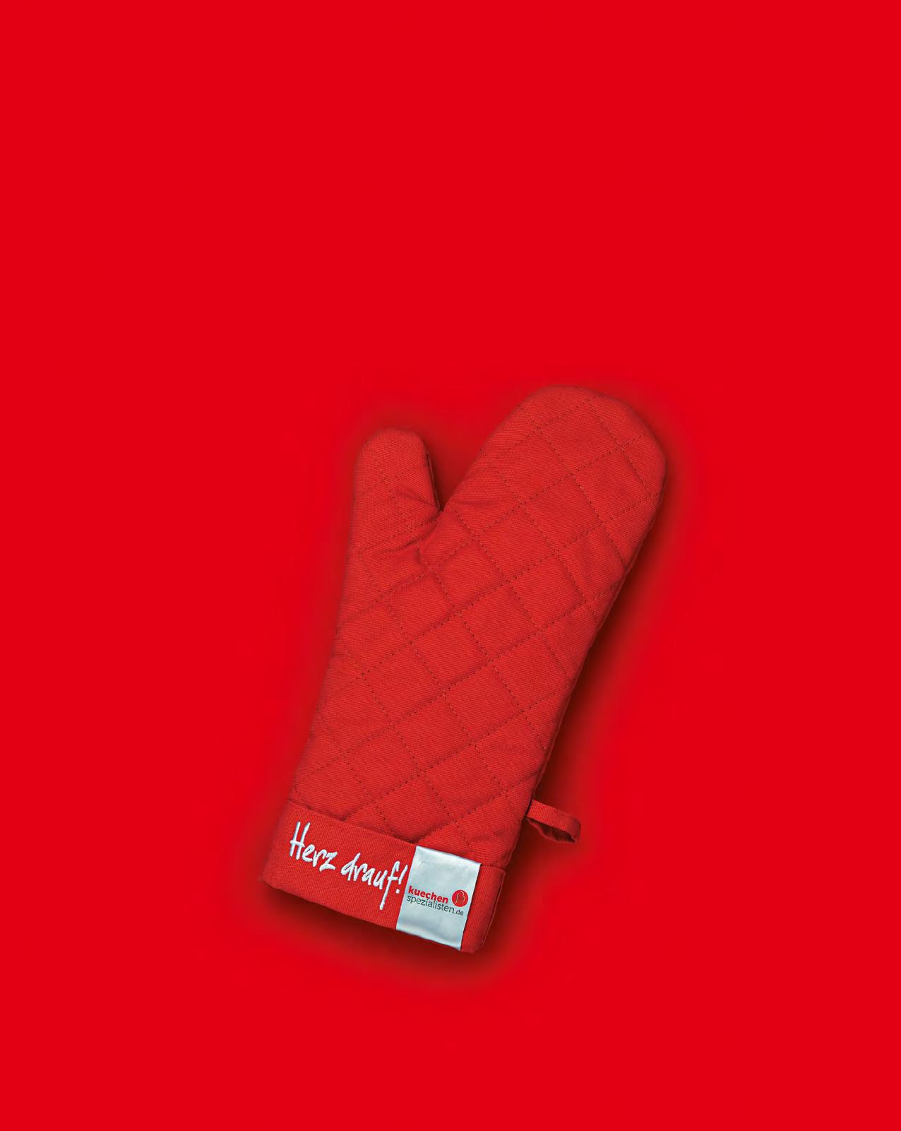 Mit unserem Freundschaftssymbol – dem roten Kochhandschuh – haben wir ein einzigartiges Markenzeichen entwickelt: Das Freundschaftssymbol der echten Küchenspezialisten. Damit differenzieren Sie sich von Ihrem regionalen Wettbewerb, geben Ihren Kunden Orientierung und die Sicherheit, endlich beim richtigen Partner angekommen zu sein. Sprechen Sie uns an!