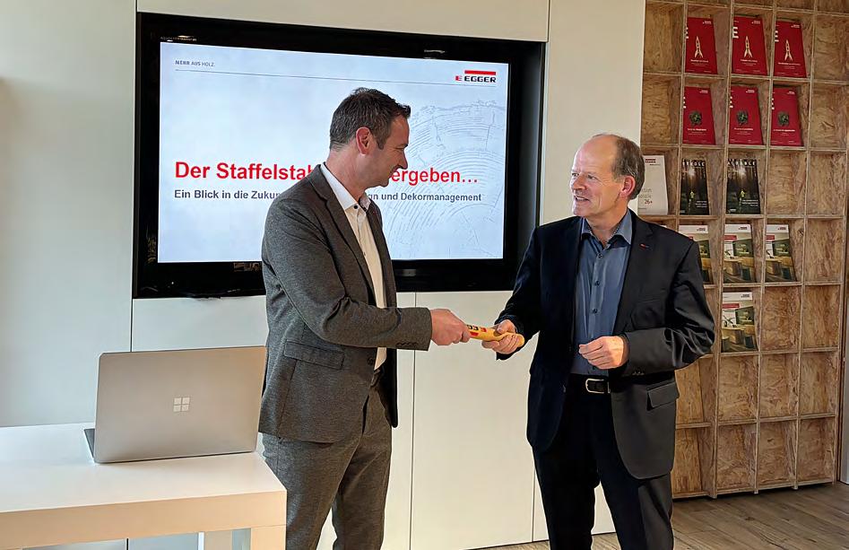 Dieser Anspruch zeigt sich nicht nur in strategischen Entscheidungen, sondern auch dort, wo Kontinuität und Wandel unmittelbar sichtbar werden. Ein emotionaler Moment markierte einen Übergang: Mit der Staffelstabübergabe von Klaus Monhoff an Matthias Wombacher wird ein neues Kapitel der Egger Designgeschichte aufgeschlagen.