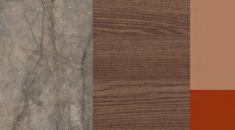 Palette aus Rot und Brauntönen. Diese Farbwelt lässt sich sowohl in Küchen als auch im Innenausbau einsetzen und vermittelt eine Nähe zur Materialität, ohne ins Rustikale oder Dekorative abzurutschen.
