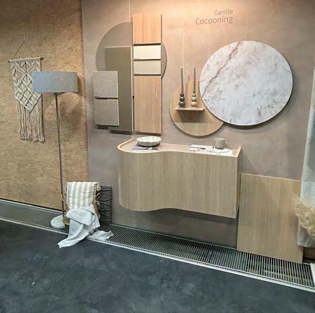 GENTLE COCOONING – Dieses zentrale Thema setzt auf Räume, die über Ordnung, Materialruhe und klare Flächen wirken. Helle, natürliche Holzoptiken treffen auf warme neutrale Farbtöne von Sand- und Softbeige bis hin zu gedeckten Braunnuancen.