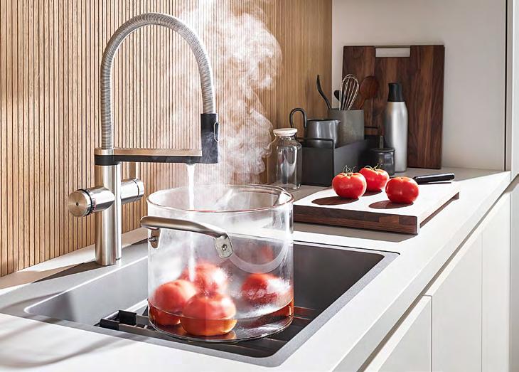 Sandro Schneider: Erfolgsentscheidend ist Einfachheit. Das bedeutet: Die Systeme müssen einfach in der Handhabung sein, verständlich und intuitiv bedienbar. Sie müssen aber auch einfach zu installieren sein. Ebenso wichtig ist ein schneller und verlässlicher Service. Die Küche verändert sich nicht spektakulär – aber fundamental. Nicht mehr einzelne Segmente definieren ihren Wert, sondern Schnittstellen: Wasser, Vorbereitung, Organisation. Genau dort entsteht Planungskompetenz. Die Spüle wird zum Arbeitsplatz, die Armatur zur Steuerzentrale, das Wassersystem zum Komfortfaktor. www.franke.de