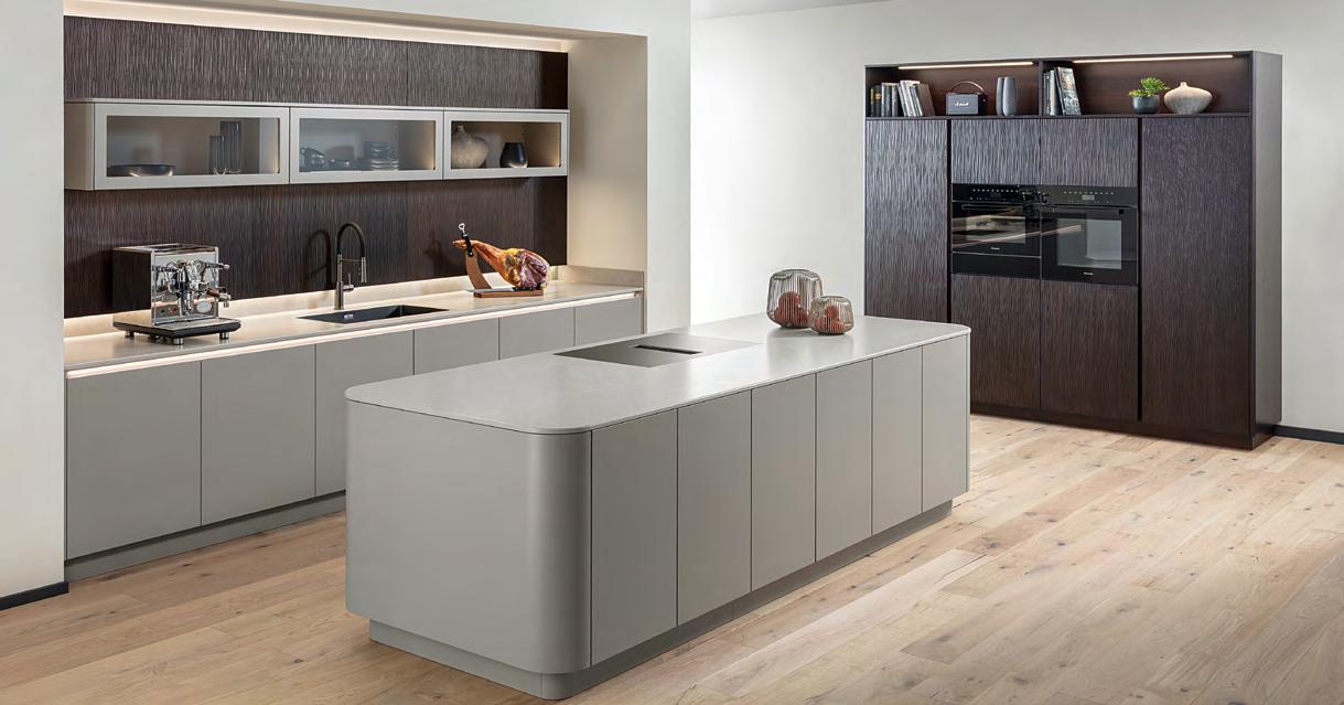 deckten Braunnuancen. In Küchen zeigt sich dieser Ansatz in ruhigen Frontbildern, zurückgenommenen Kontrasten und Oberflächen, die sich nicht in den Vordergrund drängen. In architektonischen Anwendungen wird Cocooning über zusammenhängende Raumfolgen und eine reduzierte Materialpalette übersetzt, die Nähe erzeugt, ohne den Raum zu beschweren.