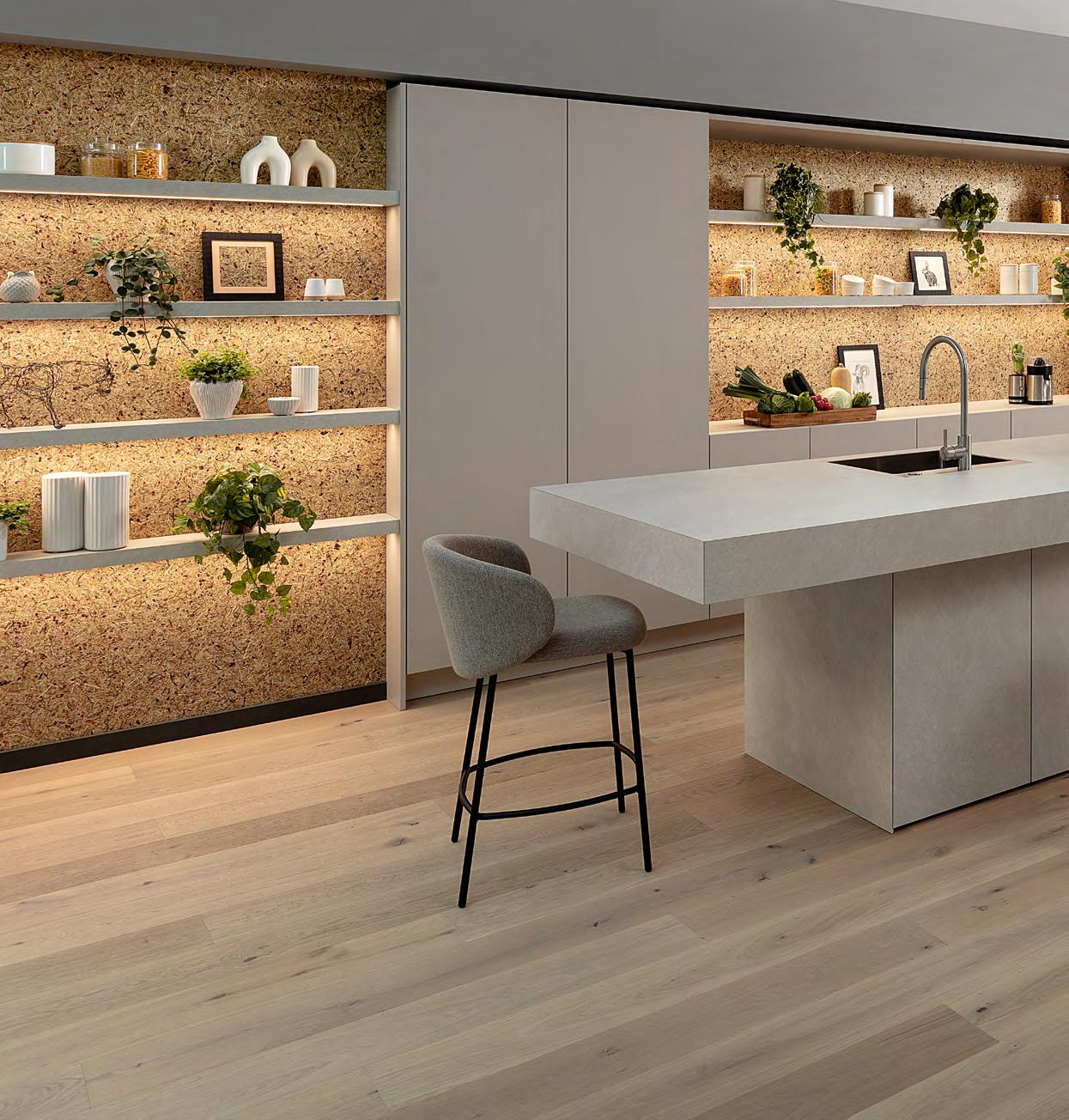 Interior Match zieht sich als verbindendes Prinzip durch alle Next Steps. Arbeitsplatten, Fronten, Korpusse und Böden werden nicht isoliert betrachtet, sondern als zusammenhängendes System gedacht. Ziel ist es, Materialien und Dekore so aufeinander abzustimmen, dass sie sich über verschiedene Anwendungen hinweg fortführen lassen. Für Küche und Architektur bedeutet das eine Vereinfachung der Planung: weniger Brüche, klarere Entscheidungen und Materialien, die sich ohne erklärende Übergänge einsetzen lassen.