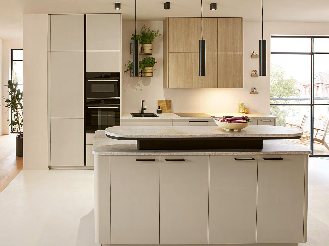 Dieses zentrale Thema setzt auf Räume, die über Ordnung, Materialruhe und klare Flächen wirken. Helle, natürliche Holzoptiken treffen auf warme neutrale Farbtöne von Sand und Softbeige bis hin zu ge