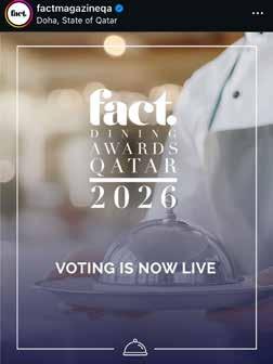 A dedicated Instagram page for fact Qatar magazine, keep up with our posts and stories for the best behind-thescenes photos from food shoots, local events and all things awesome in Doha and beyond, plus insights from the fact team.