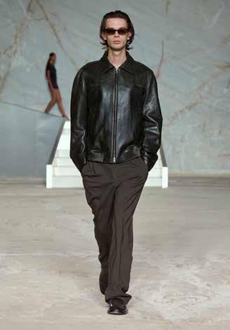 For men, pared-back utility is emphasised through functional details. Classic styles are revisited with sleeveless tailoring, bringing a fresh perspective to traditional designs. Effortless elegance is introduced via silk sets while Bermuda shorts are presented as a refined yet relaxed summer staple. Adding a luxurious and contemporary edge to warm-weather dressing, light summer leather jackets are layered over elevated essentials with soft rib textures. Garments are complemented by timeless soft leather sandals or mule loafers.