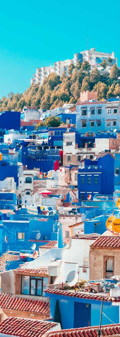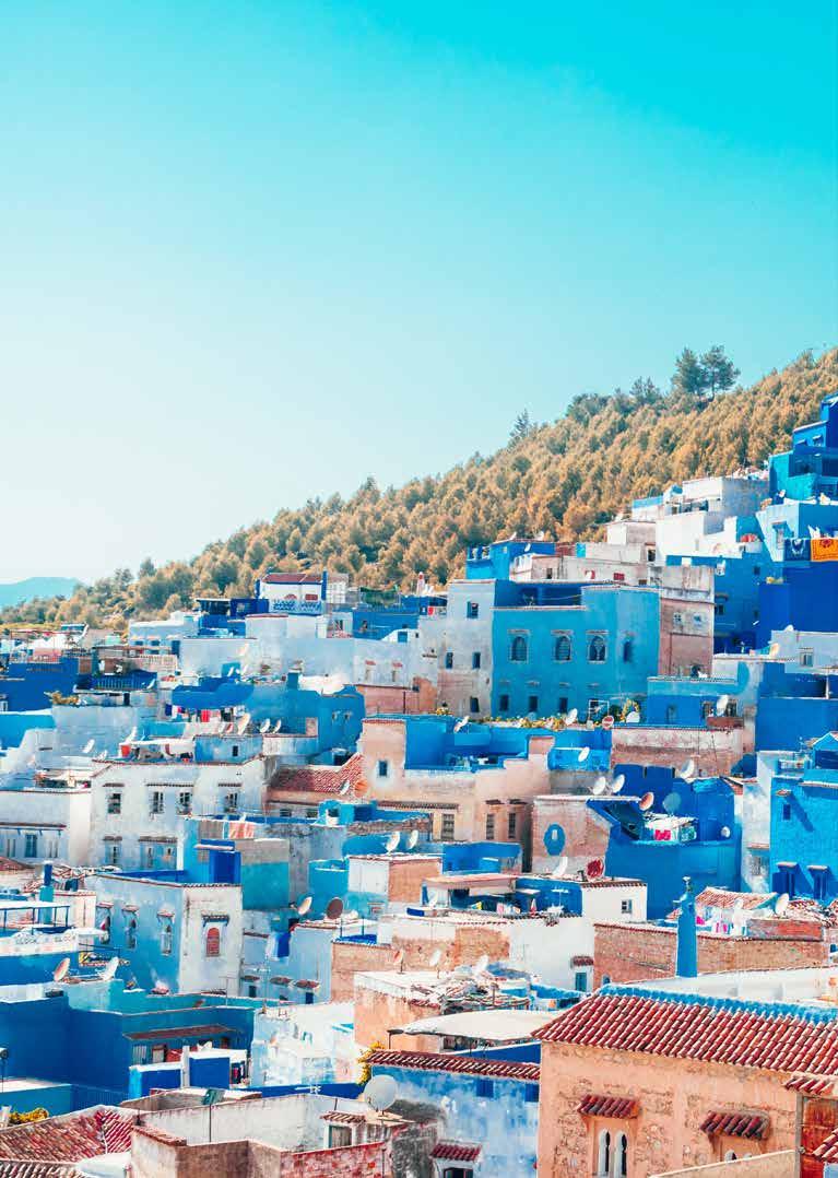 Nestled in the foothills of the Rif mountain range, Chefchaouen is most known for its expanse of blue and white buildings. There are many theories behind this colour choice. Some attribute the trend to Jewish immigrants, others say it’s to keep mosquitos away. Regardless, it lends a certain aesthetic to the cityscape, making it a photographer’s paradise. It’s not uncommon for tourists to pose in front of blue-hued houses and decorative doors.