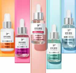 Dullness with vitamins C and E gives you glowy, revitalised skin; Bye Bye Lines with hyaluronic acid and peptide plus vitamin B5 makes skin visibly plump and smooth; Bye Bye Pores with glycolic acid and hyaluronic acid provides a smooth, soft texture and Bye Bye Dark Spots with niacinamide and ethyl vitamin C evens skin tone.
