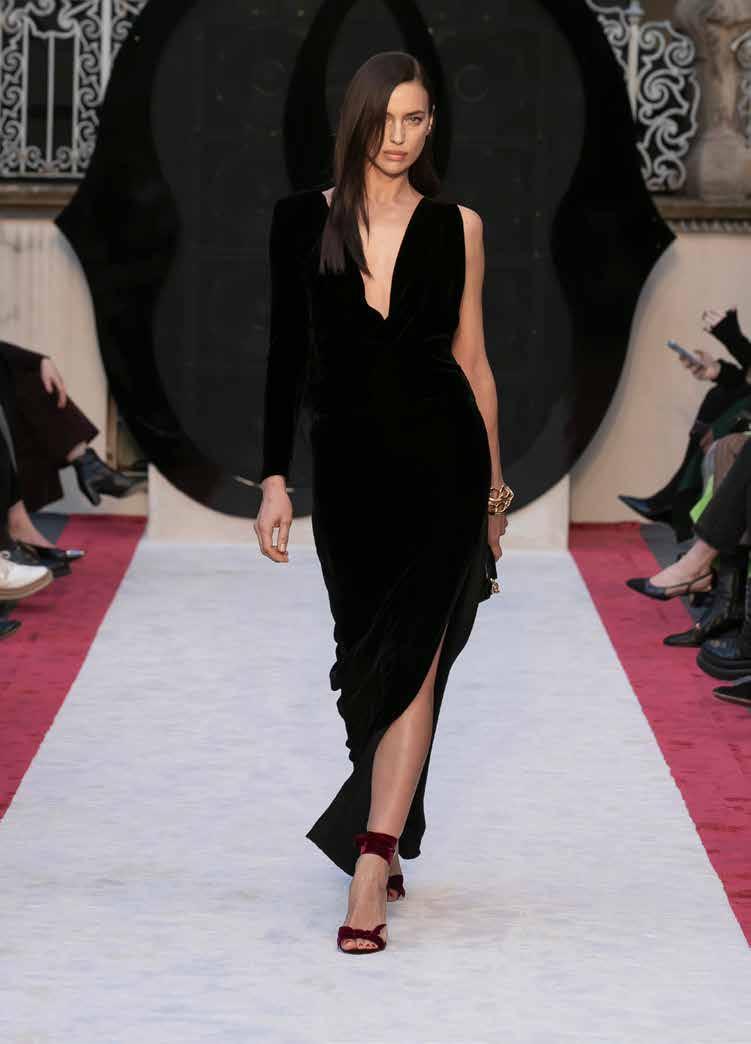 Ready-to-wear statements for day and night reflect the bygone grandeur of Da Vinci’s Casa degli Atellani, as its dark wood balustrades, scrolled ironwork, mosaic floors and opulent marble fireplaces create a rich dialogue with the season’s autumnal palette. Elusive characters embody a cinematic allure, as a duality of comfort and modern elegance abounds: structured leather coats and sophisticated tailoring is layered with fine-gauge ribbed knitwear and silk pyjama separates to create contemporary expressions of effortless luxury.