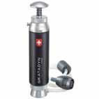 Aluminum pump construction and durable ceramic filter provide reliable performance. Removes particles, bacteria, cysts and parasites larger than 0.2 microns. Carbon bottle adaptor reduces chemicals.