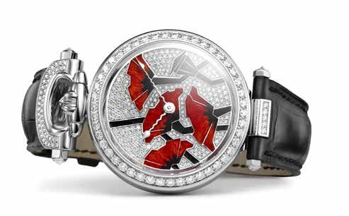 “WRITING SLOPE” CASE, OFF-CENTRE HOURS AND MINUTES, MOON PHASE, 62 HOURS POWER RESERVE, AVENTURINE GLASS WITH 10 ROUND DIAMOND INDEXES. MORE THAN SWISS MADE, SWISS HANDCRAFTED