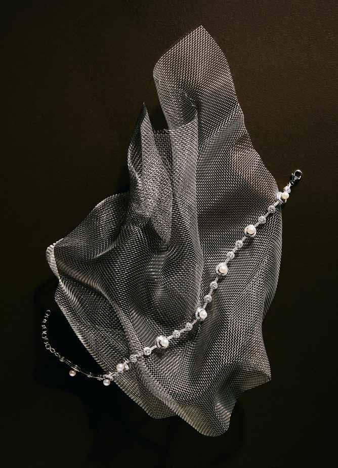 To create the new pieces, Boucheron used a 3D sand-printing technique borrowed from the automotive and aeronautics industries. The polymer binder was precision-sprayed onto the sand in successive layers, barely a millimetre thick, like a millefeuille puff pastry, making the grains adhere to one another as if glued. This innovative process in jewellery yields a notably hardwearing material that retains the texture of the sand – a novel aesthetic that resonates with the maison’s experimental spirit.