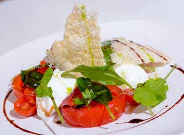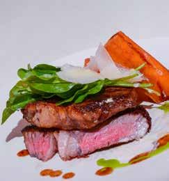 chickpea fritters and rich fondant potatoes. The next culinary masterpiece to be enjoyed is the Sicilian mini pizzolo. Here, we’re making a tasty discovery as this is not your typical pizza. It’s a doublelayered pizza, crusted with parmesan cheese, and filled with tomatoes, cheese, basil and eggs. We taste our way through numerous flavours before a final dish of grilled rib eye steak with delicious beef juice and intense truffle polenta cake arrives. The steak is done just right, and we’d expect nothing less at Fiamma.