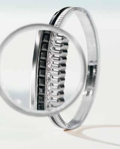 The maison introduces new Quatre Radiant Edition pieces in monochrome white gold and diamonds. Studs and a tie necklace translate the collection’s four codes into varied diamond cuts: round brilliant for Double Godron and the diamond line, baguette for Grosgrain and princess for Clou de Paris. The tubular bracelet –unveiled in 2025 in Quatre’s original palette – now arrives in an allwhite-gold, diamond-paved finish.