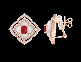 Nudo also introduces a prasiolite and green agate doublet in rose and white gold across pendant, ring and earrings. Translucent, moss-toned prasiolite layered over deep green agate creates a nuanced third hue, enlivened by discreet white diamond pavé. These doublets – uniting a translucent gem with a hardstone –uncover depths of colour that a single gem cannot achieve. Rounded shanks and hoop profiles host flush pavé accents, bringing refined scintillation to stacks or single wear.