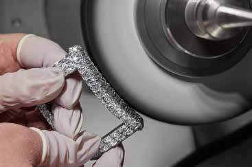 From the initial composition of the alloys to the final assembly of the four bands, each step is executed to within the nearest nanomillimetre, as any discrepancy could jeopardise the result. Using a press, without either glue or solder, the four bands are assembled by hand, and a final sound, like a click, signals that the piece is completed. However, the creations come to life through refined technology that complements traditional jewellery-making techniques. Crafting the Quatre ring requires precision beyond what any human hand can achieve, so it is done using digitally controlled machines. The stage of turning – sculpting the gold to shape the inside and outside of the ring’s bands – is one example.