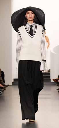The librarian chic trend combines academic, tailored pieces and V-necks with relaxed elements such as jeans and XL belts, creating an effortlessly cool look. Details such as collared shirts and ties meet wide-legged trousers for a stylish outfit.