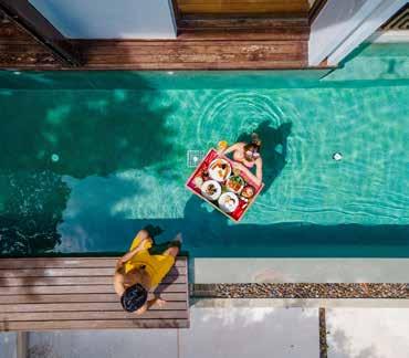 The stay is filled with experiences that connect guests to Thai culture and the island’s natural rhythm. A private cooking class offers a handson introduction to local flavours. At AWAY Spa, couples can spend their THB5,000 spa and dining credit on treatments ranging from detox therapies to sleep rituals or simply unwind with island-inspired wellness programmes. Late afternoons might be spent exploring Koh Samui’s beaches before returning to the villa for a starlit soak.