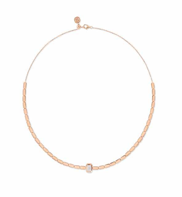 In the new Nudo necklaces, a dialogue of four stone sizes – maxi, classic, petit and mini – builds movement and a refined equilibrium of volumes. Their interplay brings a natural rhythm to the neckline while preserving Nudo’s silhouette. The Clessidra cut adds dimensionality and enhances the gems’ play of light while keeping Nudo’s essential design; with its two faces, the gem sits close to the skin, creating a quiet, intimate connection between jewel and wearer.