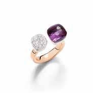 The Nudo Toi et Moi ring in rose and white gold balances colour and light: a vibrant amethyst in classic size pairs with Nudo’s iconic silhouette in white diamond pavé in petit size. The interplay of scale and surface gives the ring a clear graphic identity – confident alone, harmonious in a stack. Matching earrings echo the same dialogue between the gemstone and diamond-set forms, perfect for mixing with the existing Toi et Moi palette. True to Pomellato’s Free Gems philosophy, this Nudo milestone champions stones for their character as much as their beauty. Each gem retains its voice as it joins a larger composition of colour and connection.