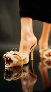 Schiaparelli is well-known for its unique and sculpted creations. This time, the brand took very realistic cat-head heels to the catwalk. Designed by Daniel Roseberry, the shoes feature hand-sculpted cat faces with intricate details, including fangs, textured fur and whiskers. This example of surrealist fashion is not made from real animals but crafted from resin, foam, felt and faux fur. A piece of art!