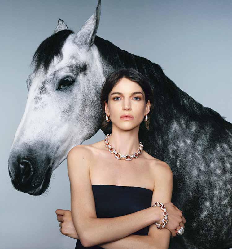 But the equestrian world goes beyond the maison’s name. The horse’s movements, captured in patterns as sunlight dances across the animal in motion, create ever-shifting mosaics of light and shadow. This vision of fluid beauty became both philosophy and foundation, inspiring Pomellato’s iconic creation: the golden chain.
