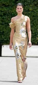 gown is a show-stopper with a sequence of little fans building a frock that embraces simplicity in its cut and complexity in its texture.