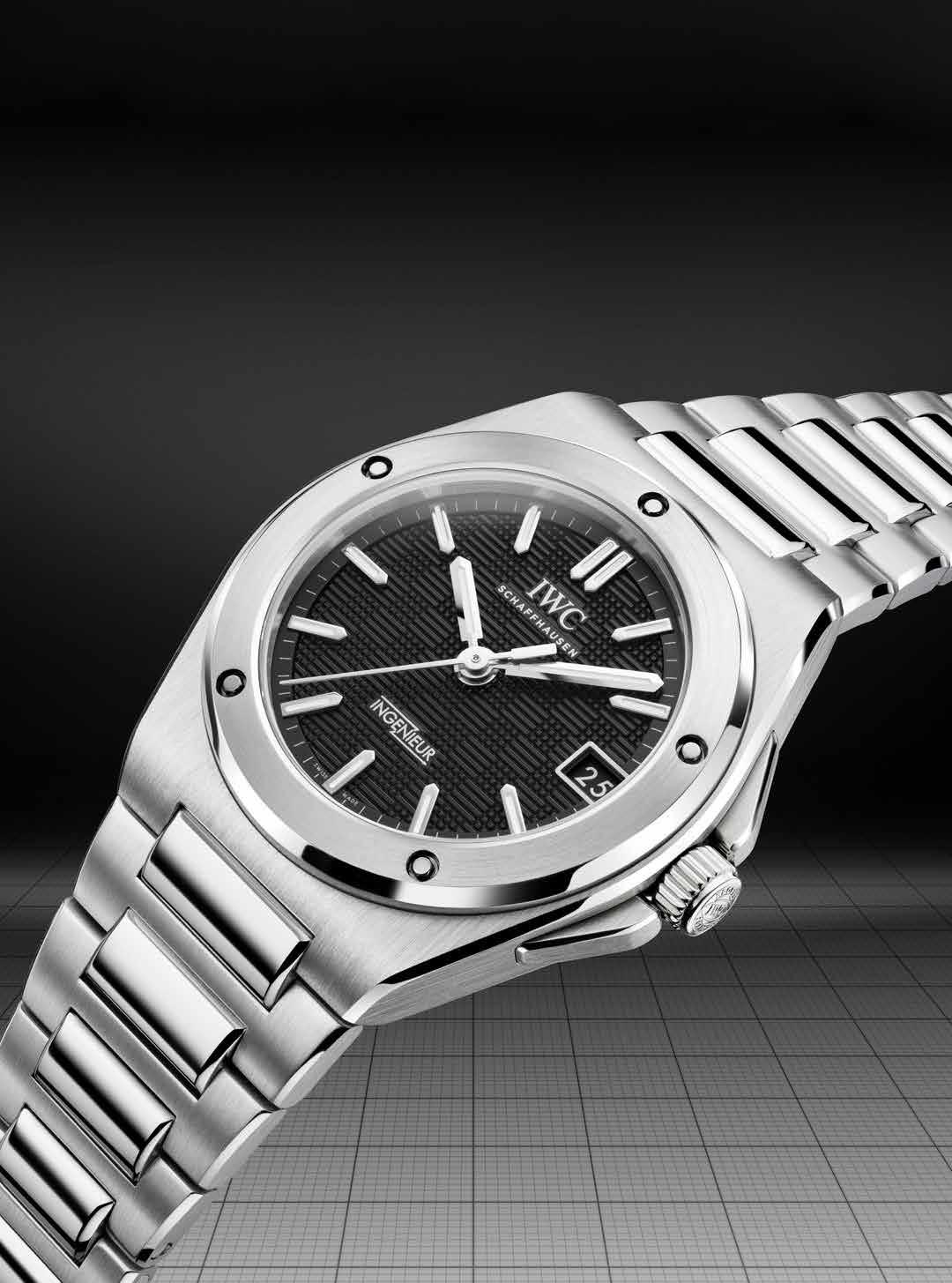 With this new automatic model, the Swiss luxury watch manufacturer complements its Ingenieur collection with three 35-millimetre versions. One model is crafted from 18-carat 5N gold featuring a gold-coloured dial, while two come in stainless steel with either a black or a silverplated dial. The new Ingenieur Automatic 35 offers the same enhanced ergonomics and highly detailed finishing as the 40-millimetre version with a thickness of just 9.44 millimetres.