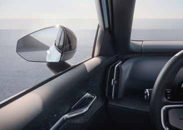 of the car. At the flanks, the athletic stance of the vehicle is underscored by bold lines and 19-inch wheels with a stylish glossy black finish. A wide panoramic glass sunroof interlocks with the compact SUV’s pillars contributing to the EX30’s eye-catching appearance. The well-balanced proportions continue at the back with C-shaped, stacked LED tail lights completing the rear look.