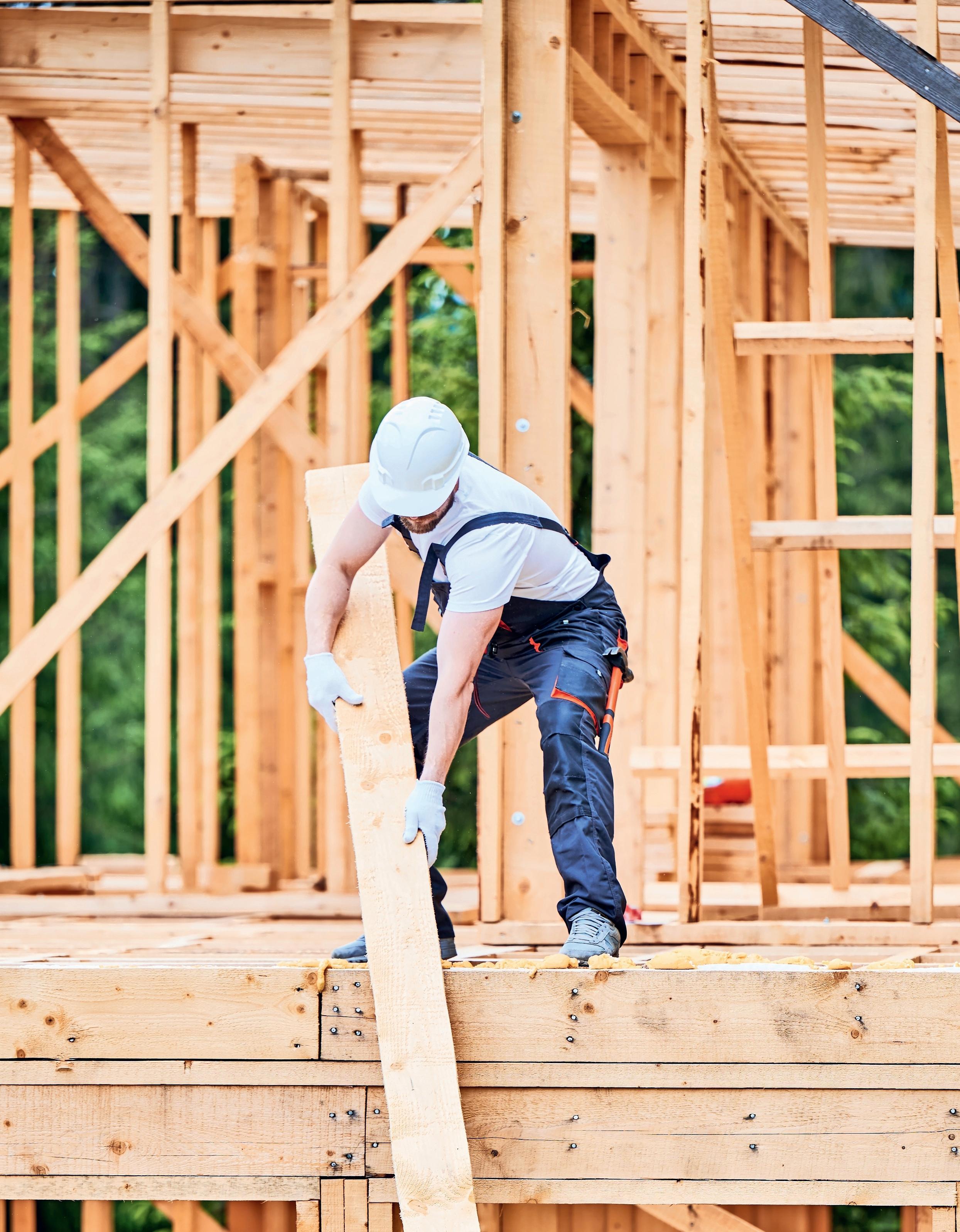 Bærende konstruksjoner av tre. Systemet sørger for at bygget tåler vekten av bygningsmaterialer, inventar og mennesker, i tillegg til for eksempel sterk vind eller bevegelser i grunnen.