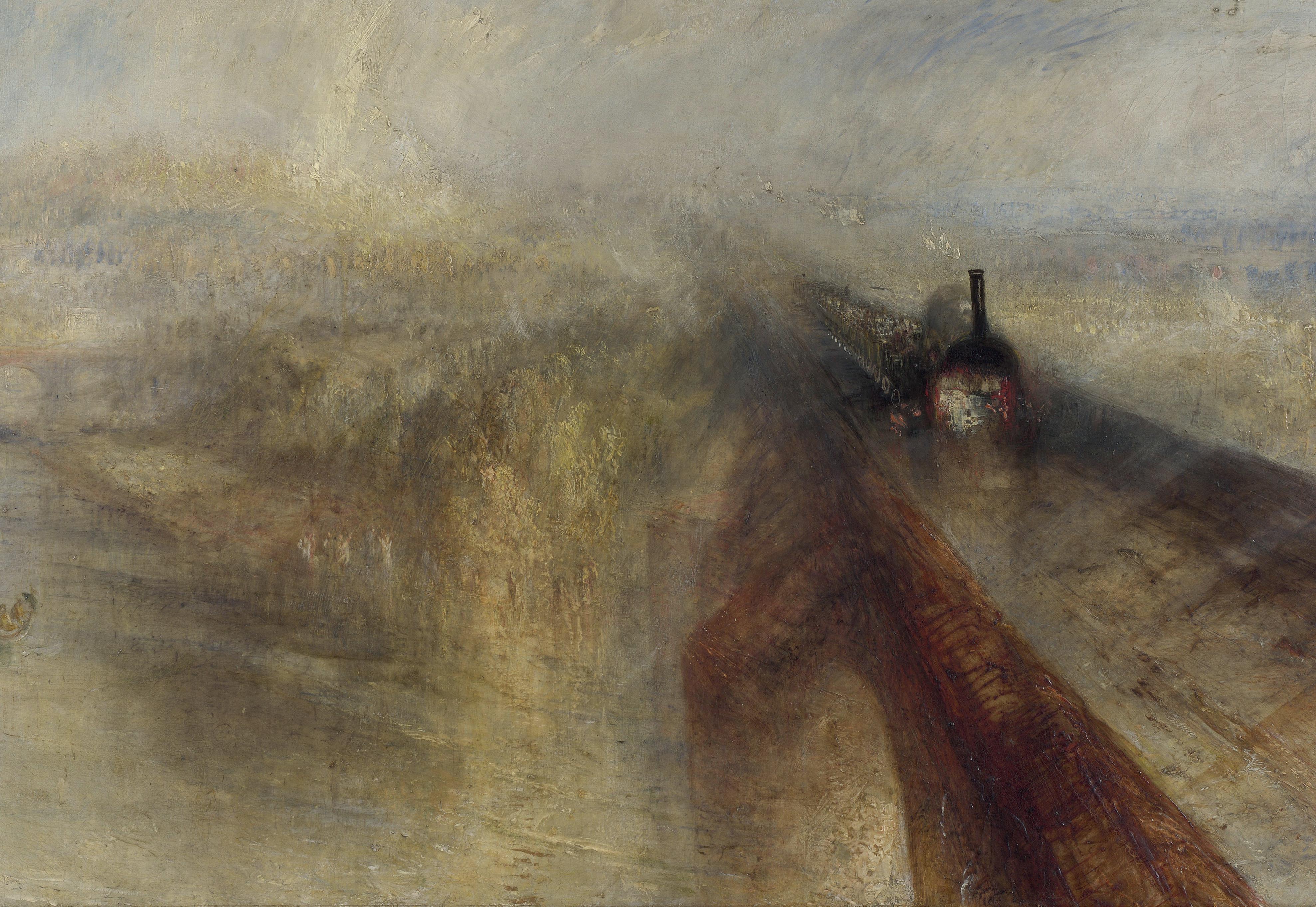 Maleriet Rain, Steam, and Speed – The Great Western Railway av J.M.W. Turner (1775–1851) vart først utstilt på Royal Academy i 1844, og viser eit tog som passerer austover på the Maidenhead Railway Bridge (ferdigbygd i 1838) over Themsen mellom Taplow og Maidenhead vest for London (National Gallery, London).