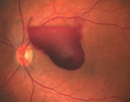 Figur 2.14 Blodårene i netthinnen. arteriene er lysere og smalere enn venene.