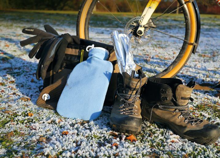 Das ist eine spannende Frage. In jedem Fall habe ich bei der Ausrüstung eher „zum Besten“ gegriffen als zu den „Schnäppchen“. Dabei war hilfreich, dass ich die Bike- und Outdoor-Branche gut kenne. Während „Marathon 365“-Reifen perfekt zu meinem Vorhaben passen, nutze ich andere Teile leicht „zweckentfremdet“. So ist z. B. die Winterbekleidung von 45NRTH sicher in Deutschland üblicherweise nicht im 365-TageEinsatz. Auch sind manche Kombinationen bisher so wohl keinem derartigen Härtetest unterzogen worden: Gates-Riemen, 3X3-Schaltung und Brose-Antrieb z. B.