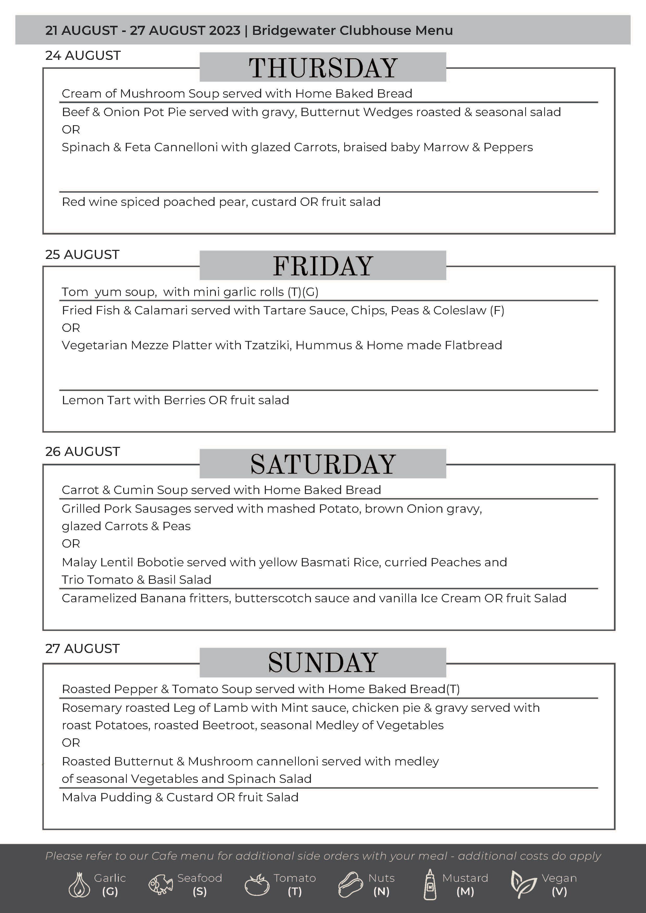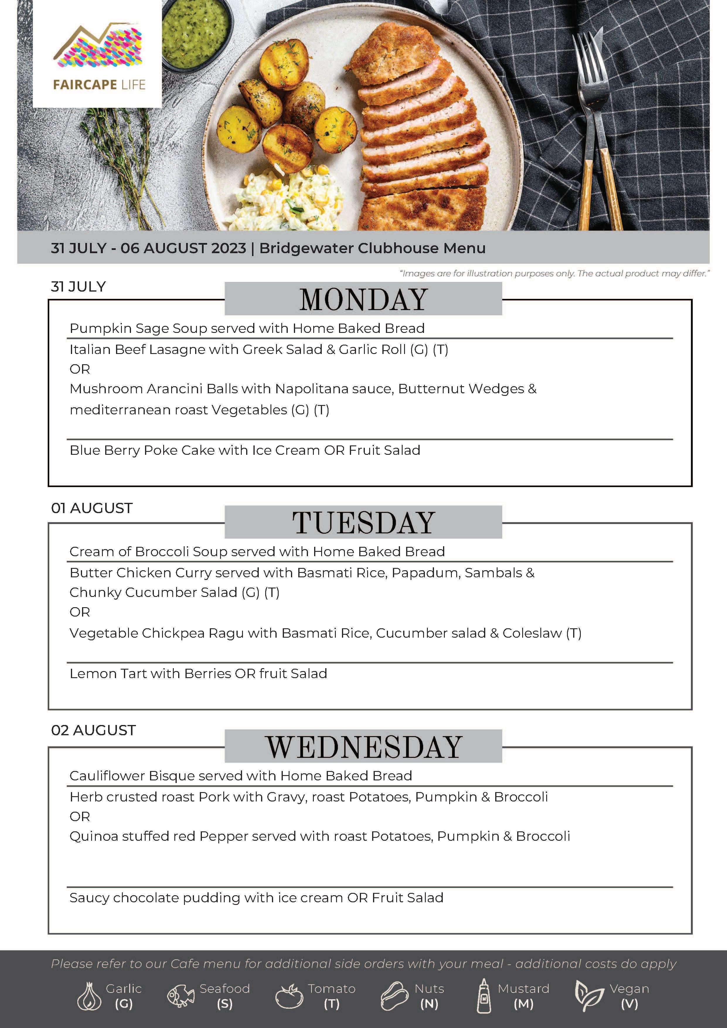 Clubhouse Menus | Bridgewater Manor | July - August