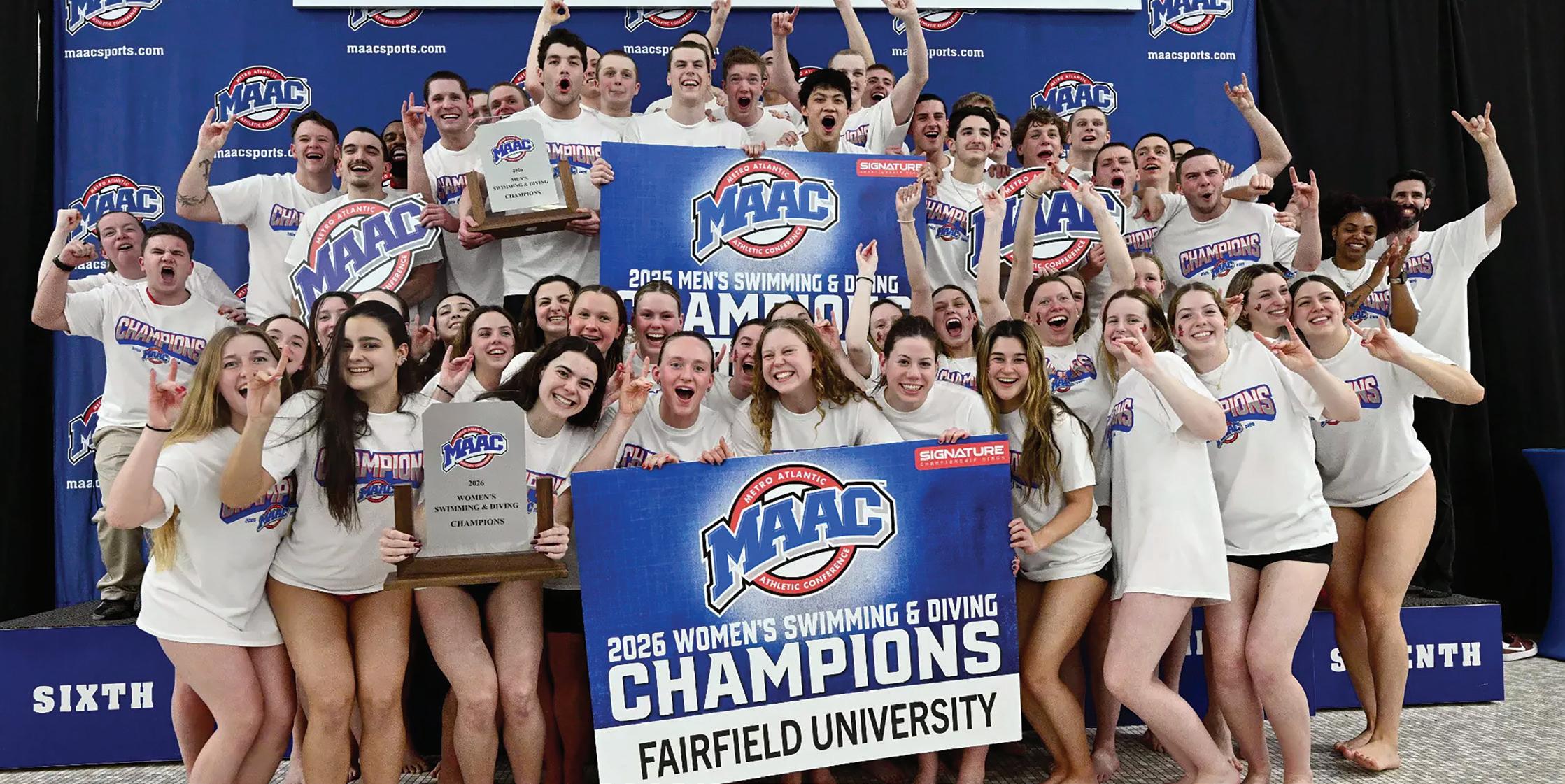 Their latest success arrived in February, as the Fairfield men’s swimming and diving team claimed the 2026 Metro Atlantic Athletic Conference Championship, emerging triumphant for the first time in program history. On the pool deck, the brothers stood shoulder to shoulder atop the podium, at ease amid a swarm of teammates flashing “Stags Up” hand signals and wide grins.