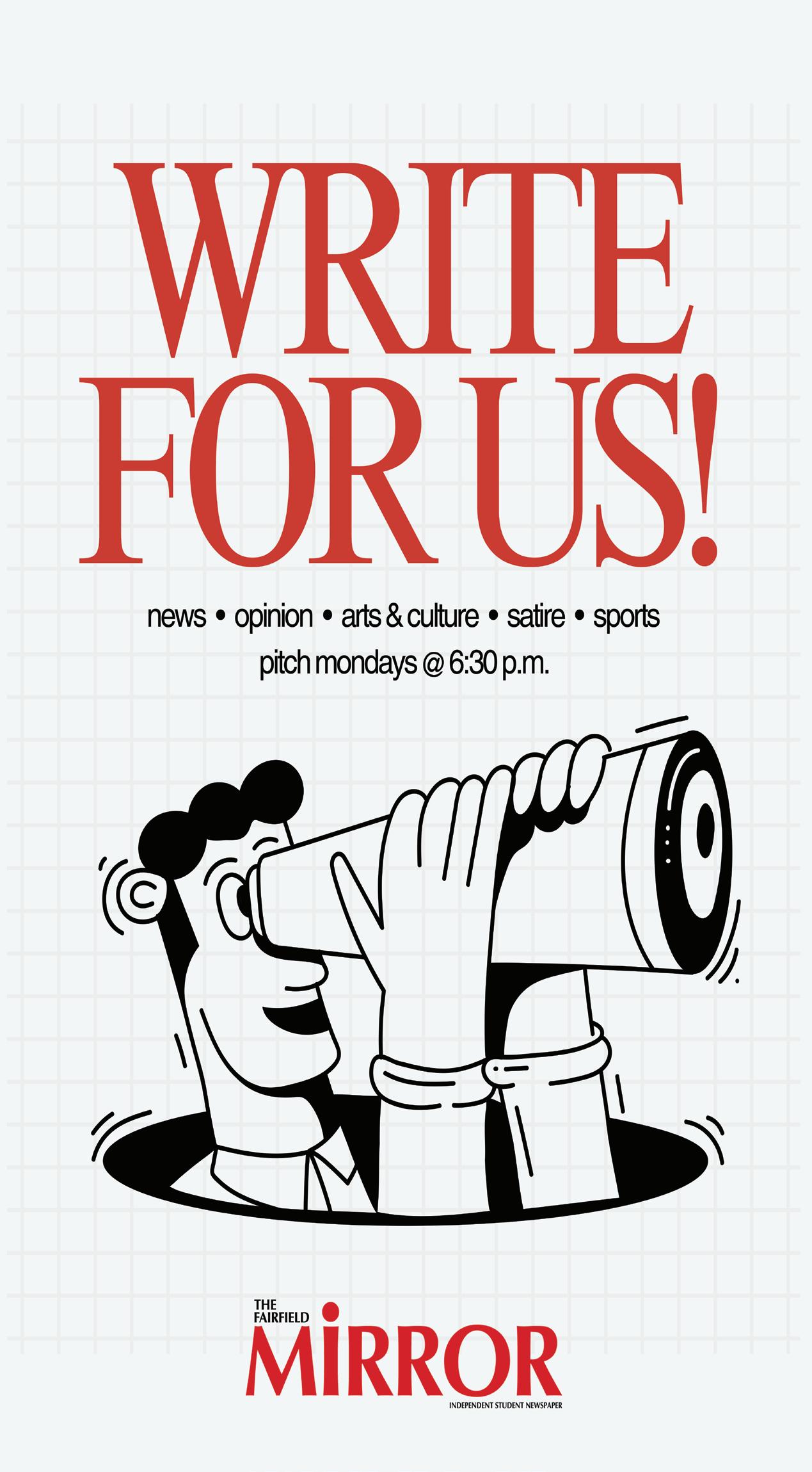 The Mirror is the recognized student newspaper of Fairfield University. Opinions and ideas expressed herein are those of the individual student authors, and not those of Fairfield University or its Board of Trustees.